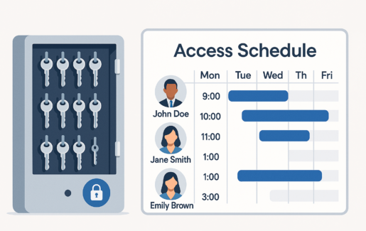 はじめに鍵管理は、企業のセキュリティと業務効率を守る重要な仕組みです。しかし、単に鍵を保管するだけでは不十分で、**「いつ、誰が、どの鍵を使えるか」**を制御することが求められます。そこで役立つのが アクセススケジュール機能。今回は、導入メリットを業種別に具体例で解説します。アクセススケジュールとは?アクセススケジュールは、鍵や資産の利用可能時間を設定し、時間外の持ち出しを防ぐ仕組